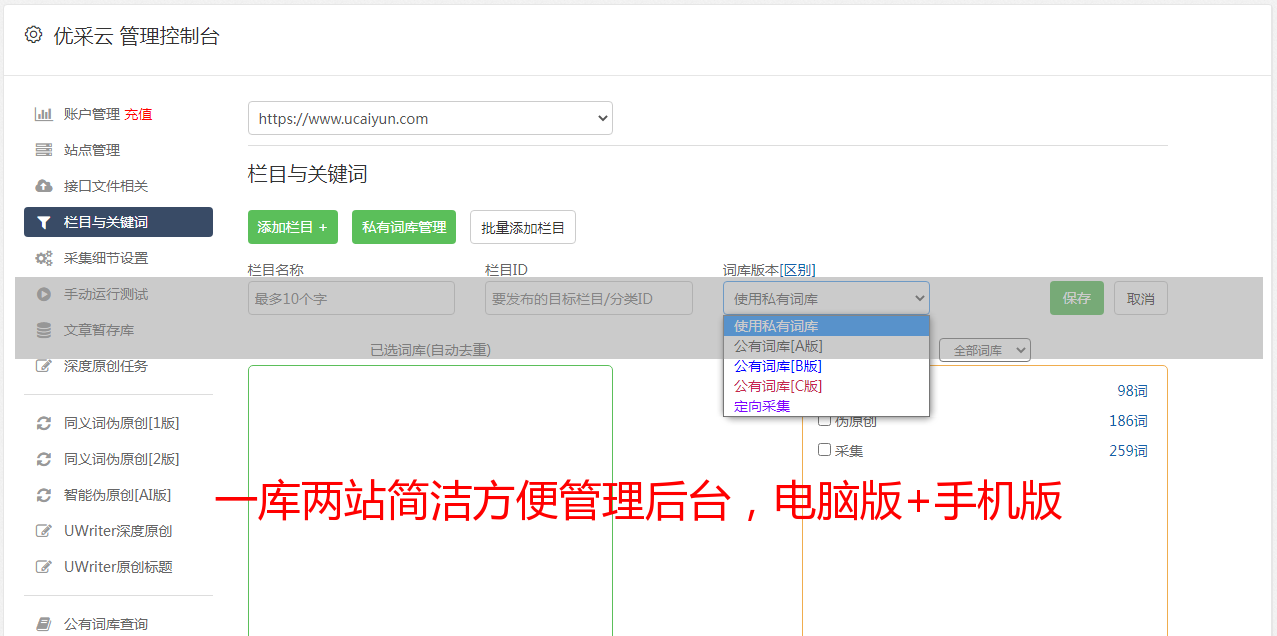 此程序使用一个数据库和两个工作站来管理后台,以实现简单方便的管理,一个用于管理,另外两个网站,计算机版+移动版