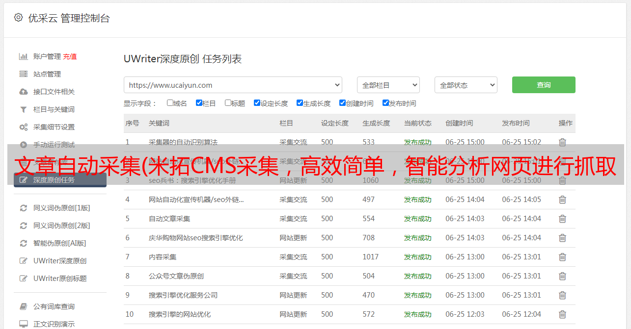 文章自动采集(米拓CMS采集,高效简单,智能分析网页进行抓取!)