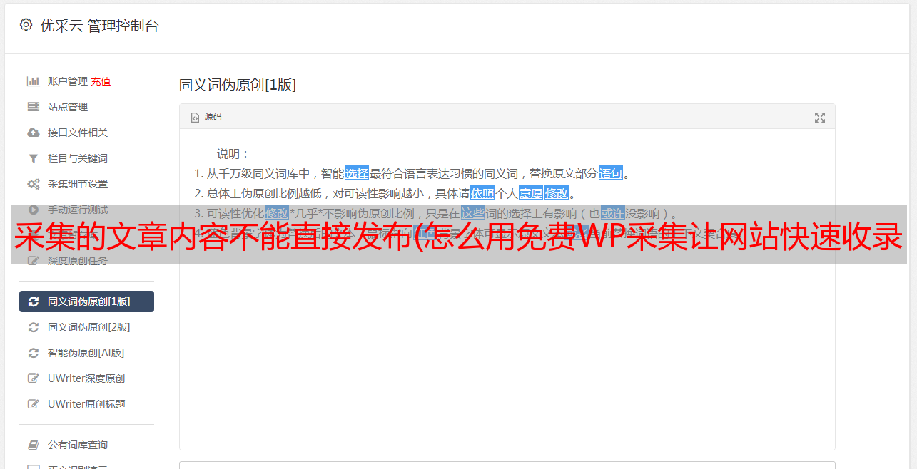 采集的文章内容不能直接发布(怎么用免费WP采集让网站快速收录把关键词优化到首页 )