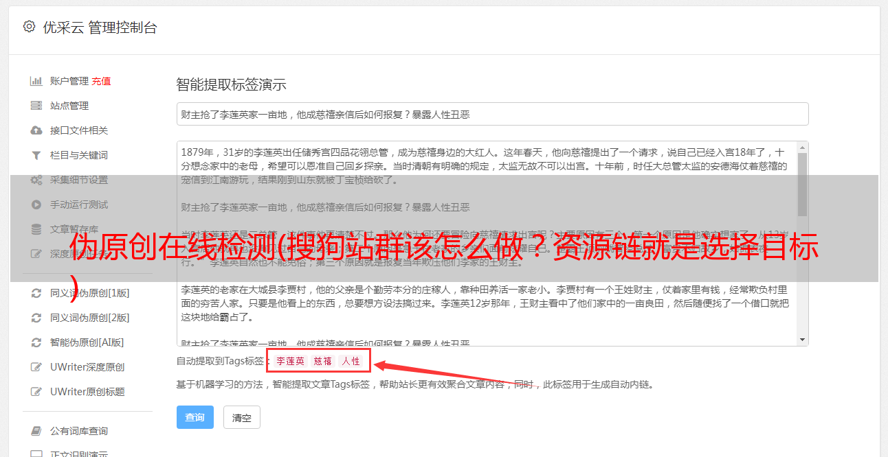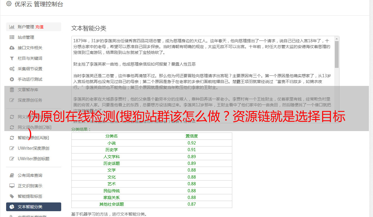优采云 发布时间: 2022-02-23 06:00伪原创在线检测(搜狗站群该怎么做?资源链就是选择目标