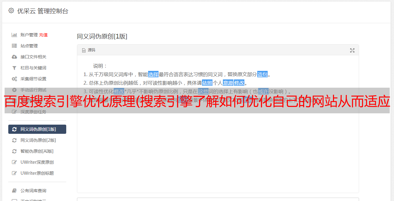 百度搜索引擎优化原理(搜索引擎了解如何优化自己的网站从而适应搜索引擎的工作原理 )