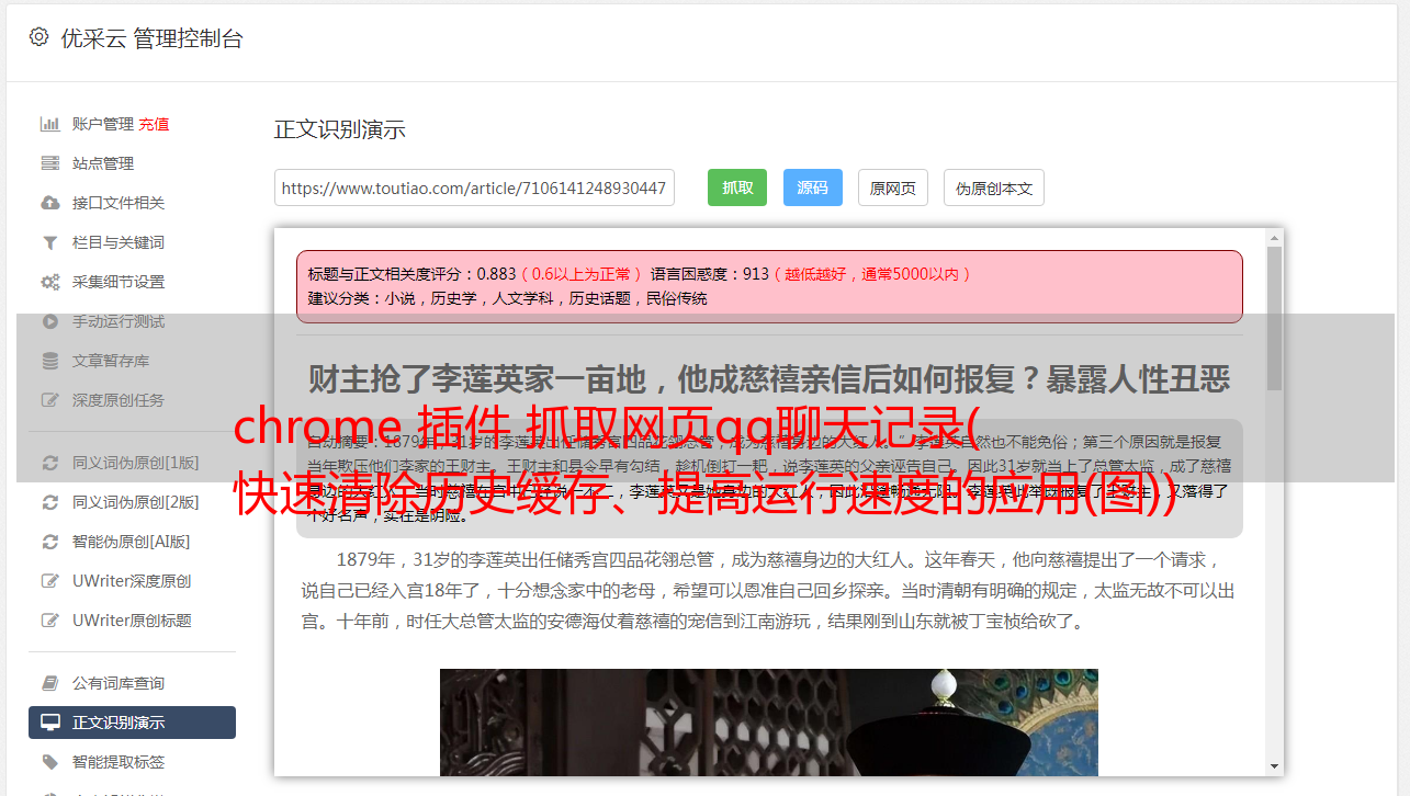 chrome 插件 抓取网页qq聊天记录( 快速清除历史缓存、提高运行速度的应用(图))