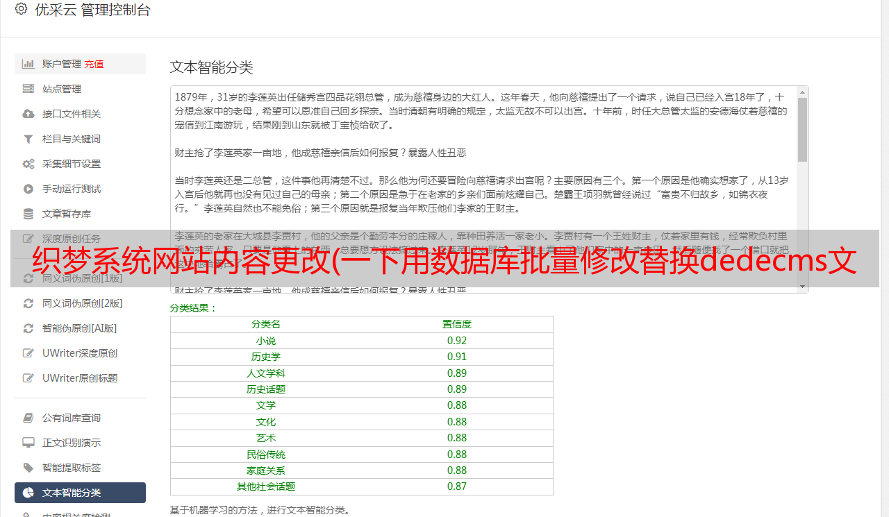 优采云 发布时间: 2022-02-23 17:15织梦系统网站内容更改(一下用数据库批量修改替换dedecms文章标题和内容太)