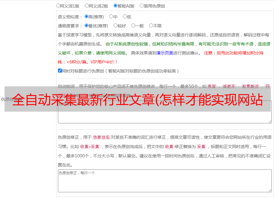 在2、自动发布功能中,可以设置发布数量、伪原创保留字、标题插入关键词、按规则插入本地图片等功能,提高< @文章原创