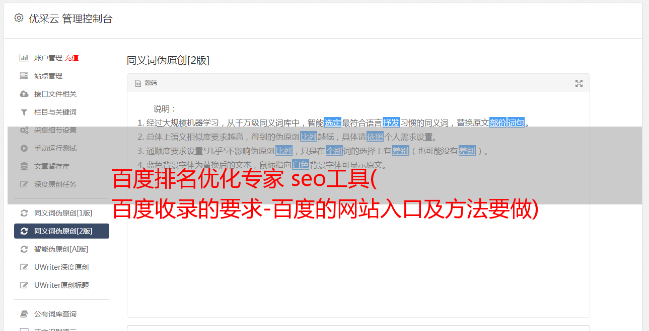 百度排名优化专家 seo工具( 百度收录的要求-百度的网站入口及方法要做)