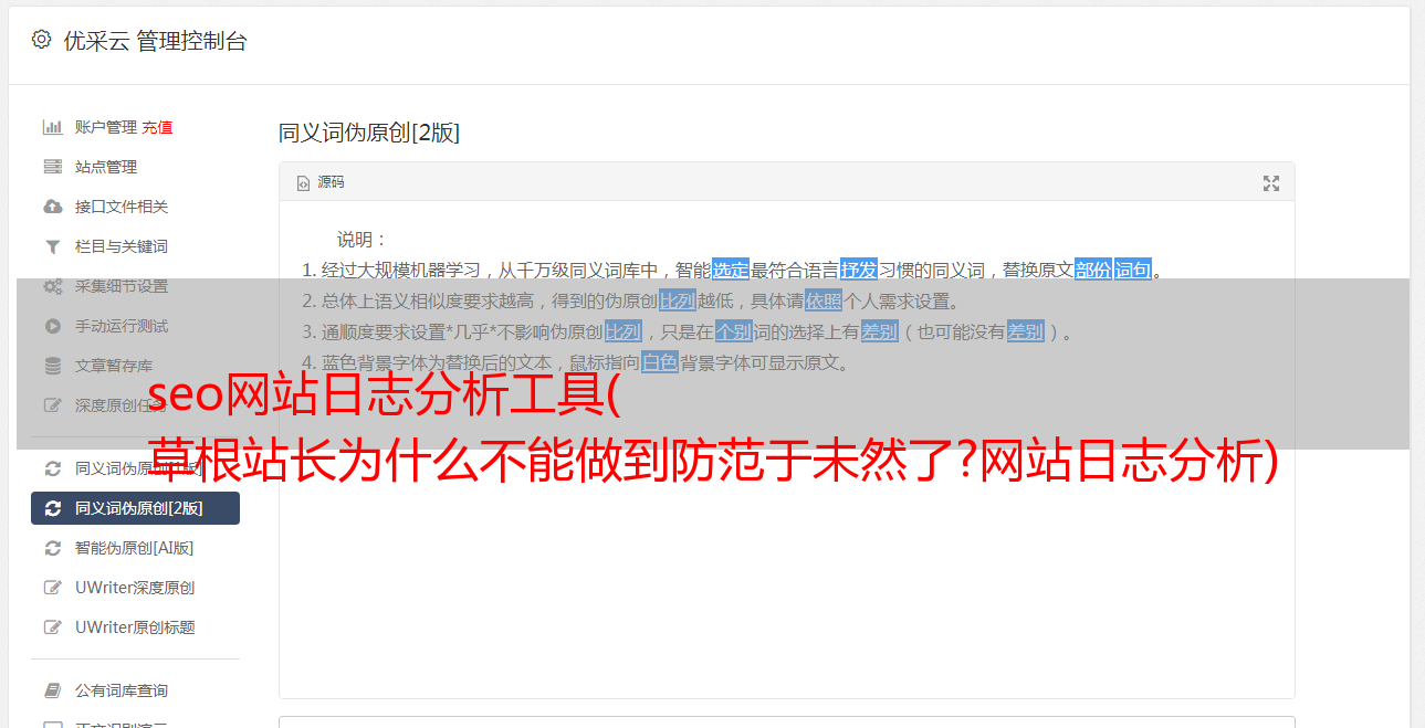 优采云 发布时间: 2022-02-24 01:16seo网站日志分析工具(
