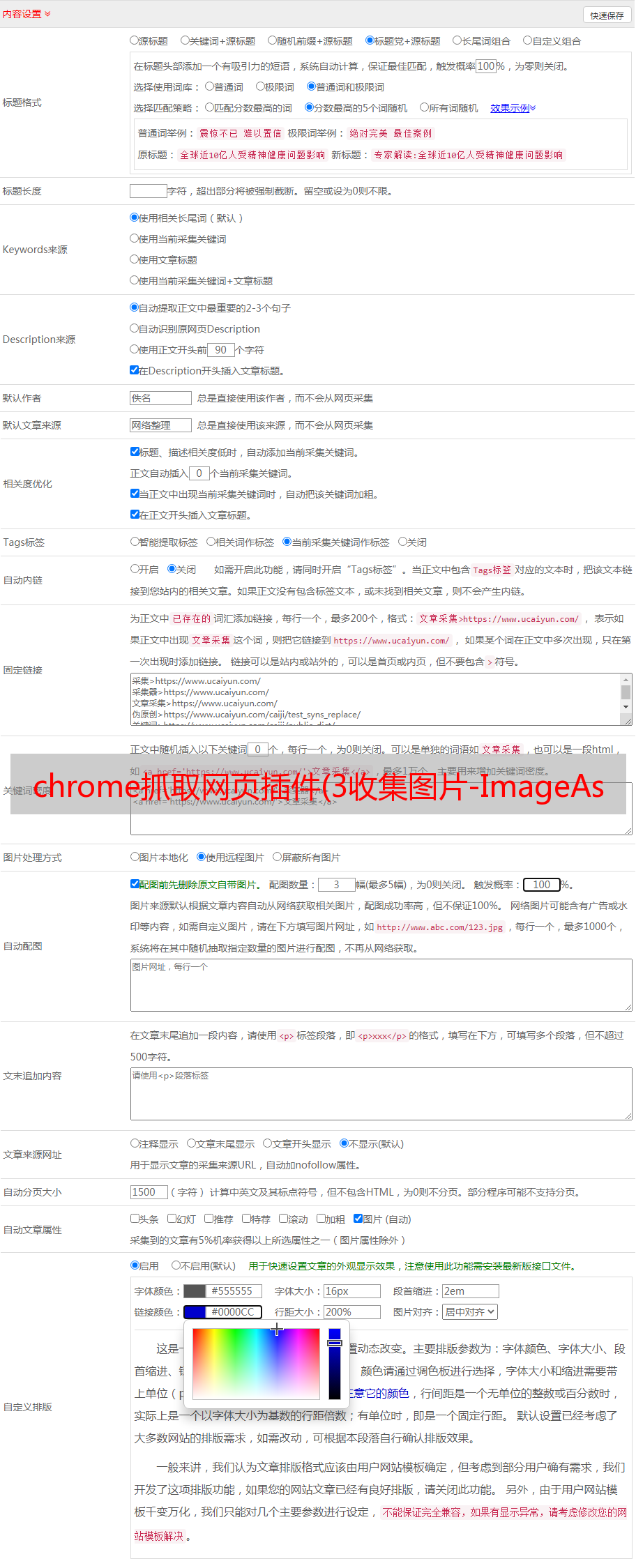 对于网页上多种图片素材的采集,本插件提供了一种极其快捷的方式——