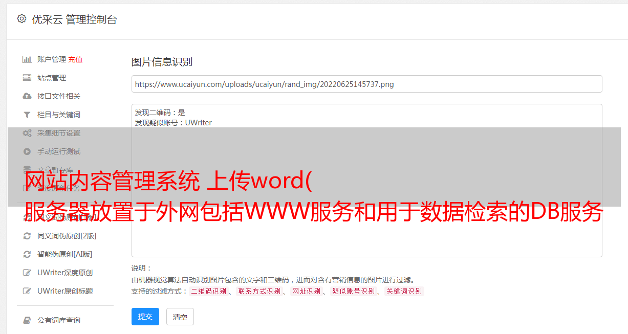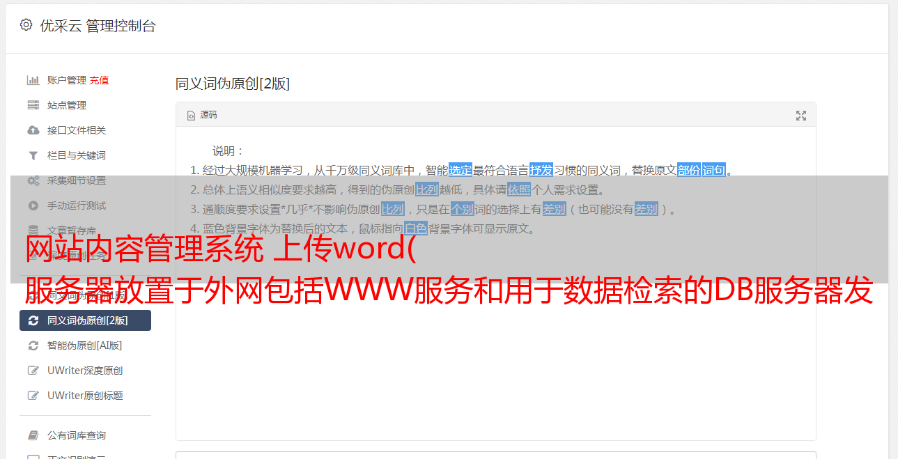 网站内容管理系统 上传word( 服务器放置于外网包括WWW服务和用于数据检索的DB服务器发布)