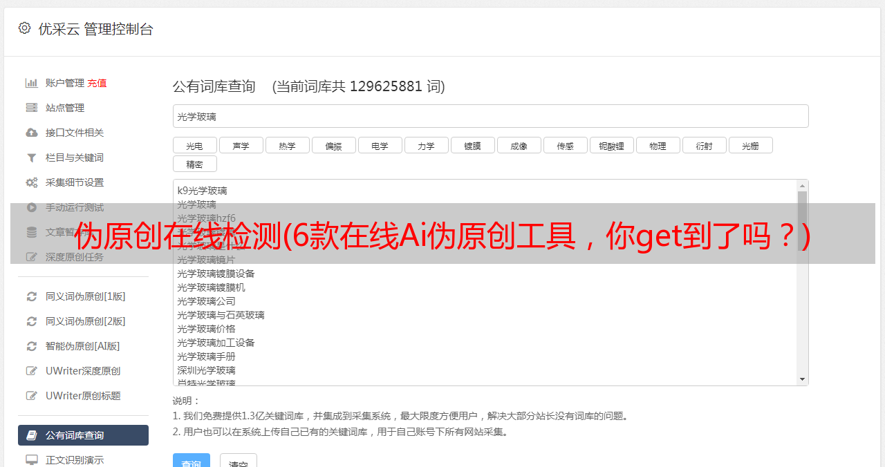 优采云 发布时间: 2022-02-24 09:06伪原创在线检测(6款在线Ai伪原创工具,你get到了吗?)