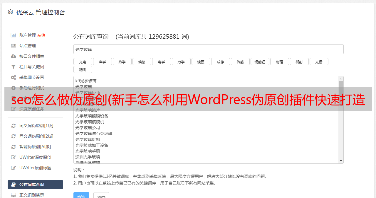 优采云 发布时间: 2022-02-24 13:01seo怎么做伪原创(新手怎么利用WordPress伪原创插件快速打造原创内容(图))