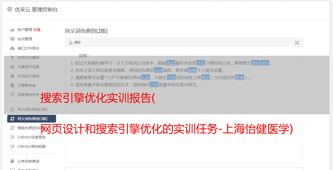 优采云 发布时间: 2022-02-24 13:31搜索引擎优化实训报告(