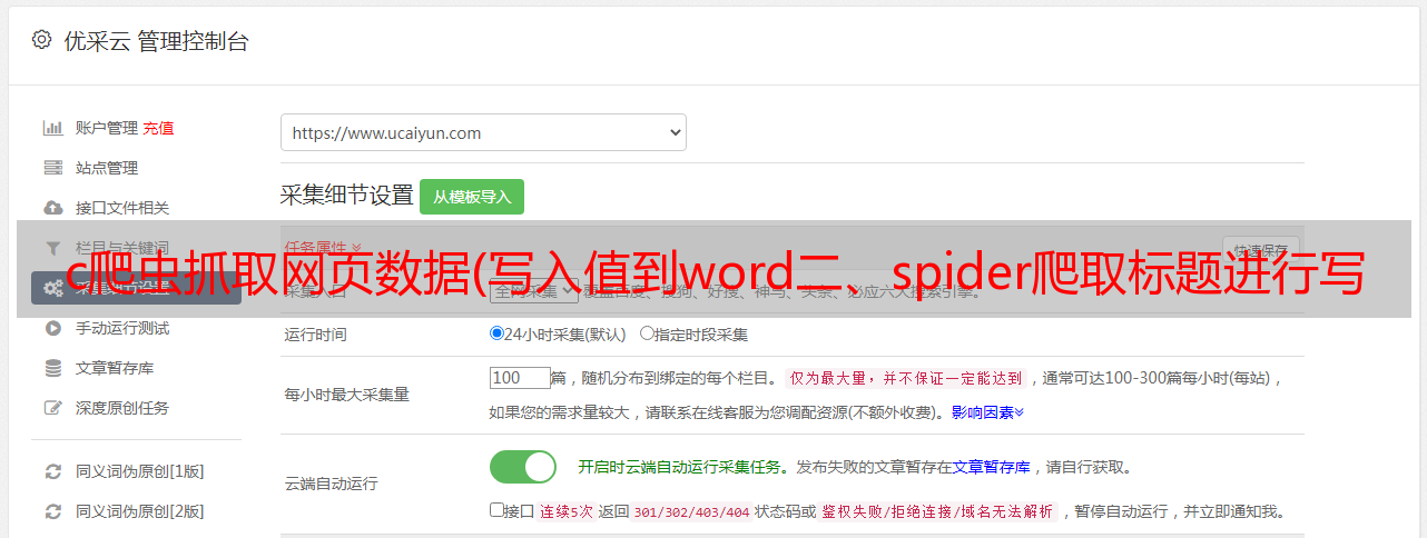 优采云 发布时间: 2022-02-24 14:09c爬虫抓取网页数据(写入值到word二、spider爬取标题进行写入三、爬去代码并将代码进行装换遇到问题