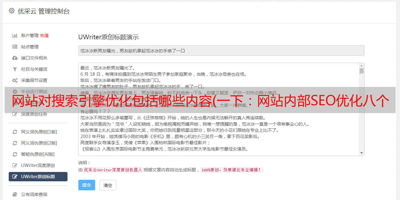 优采云 发布时间: 2022-02-24 14:28网站对搜索引擎优化包括哪些内容(一下:网站内部SEO优化八个层面的内容内容)