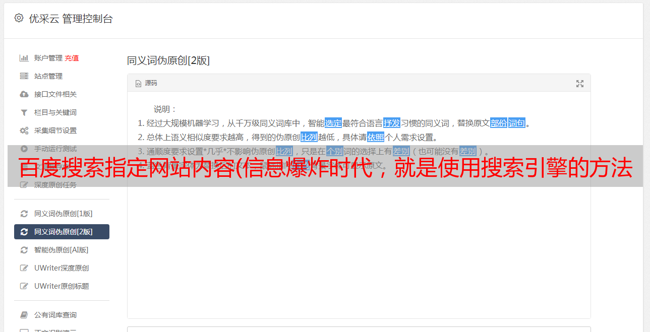 优采云 发布时间: 2022-02-24 15:07百度搜索指定网站内容(信息爆炸时代,就是使用搜索引擎的方法出了问题!)