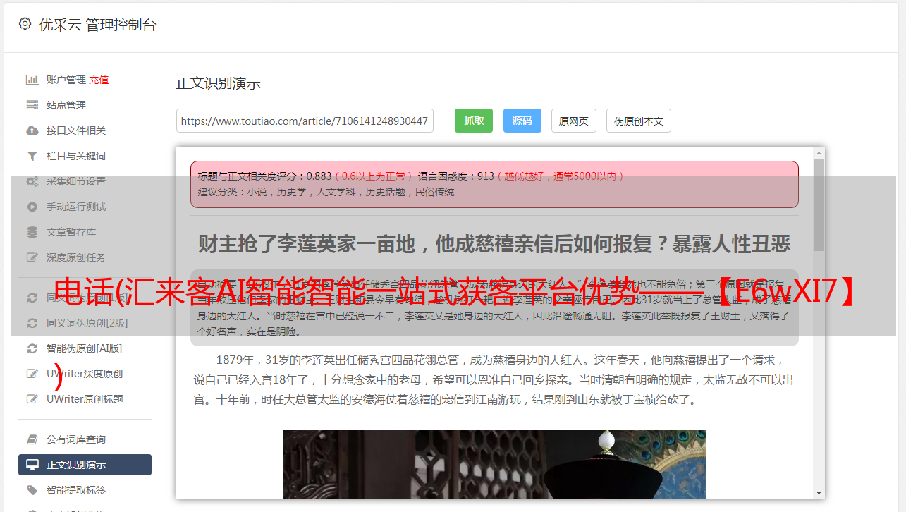 优采云 发布时间: 2022-02-25 04:18电话(汇来客AI智能智能一站式获客平台优势——【E6wXI7】