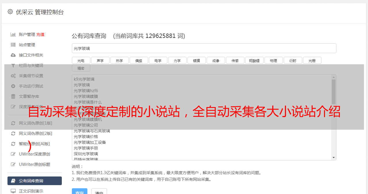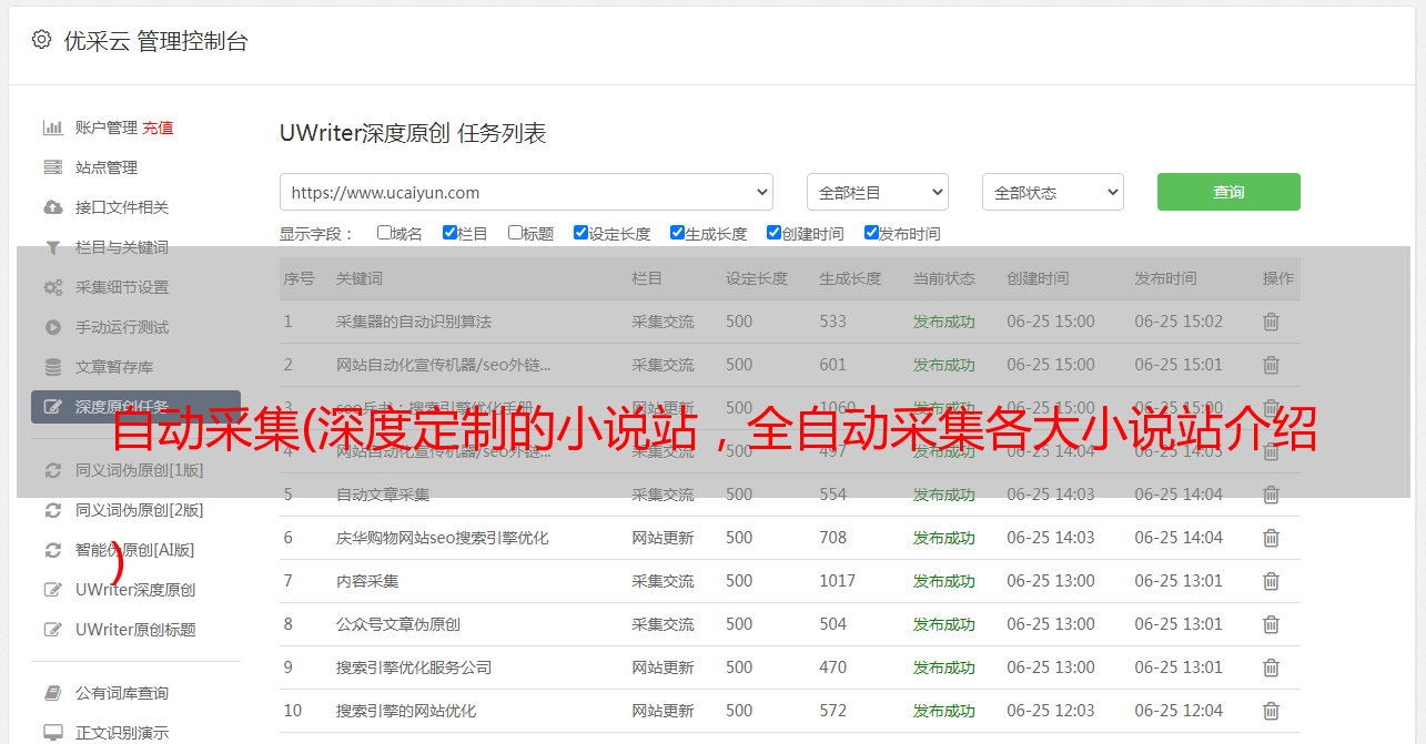 优采云 发布时间: 2022-02-25 08:27自动采集(深度定制的小说站,全自动采集各大小说站介绍