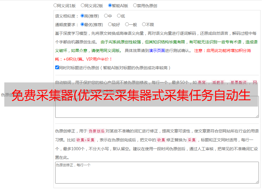 免费采集器(优采云采集器式采集任务自动生成正则表达式用)