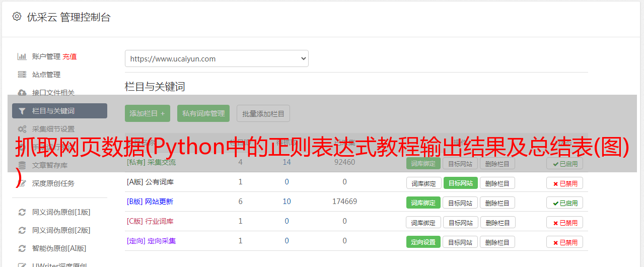 优采云 发布时间: 2022-02-25 13:01抓取网页数据(Python中的正则表达式教程输出结果及总结表(图)