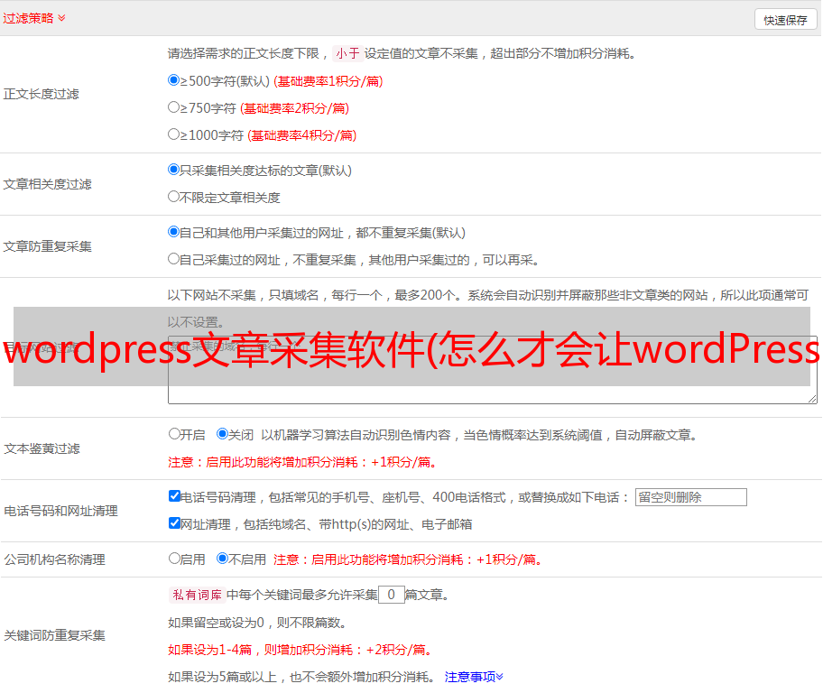 与其他wordpress插件相比,这个wordpress插件基本没有规则,更别说花大量时间学习正则表达式或者html标签,一分钟就能上手,直接输入关键词即可实现采集 (wordpress 插件还带有 关键词采集 功能)。全程自动挂机!设置任务,自动执行采集伪原创发布并主动推送到搜索引擎。