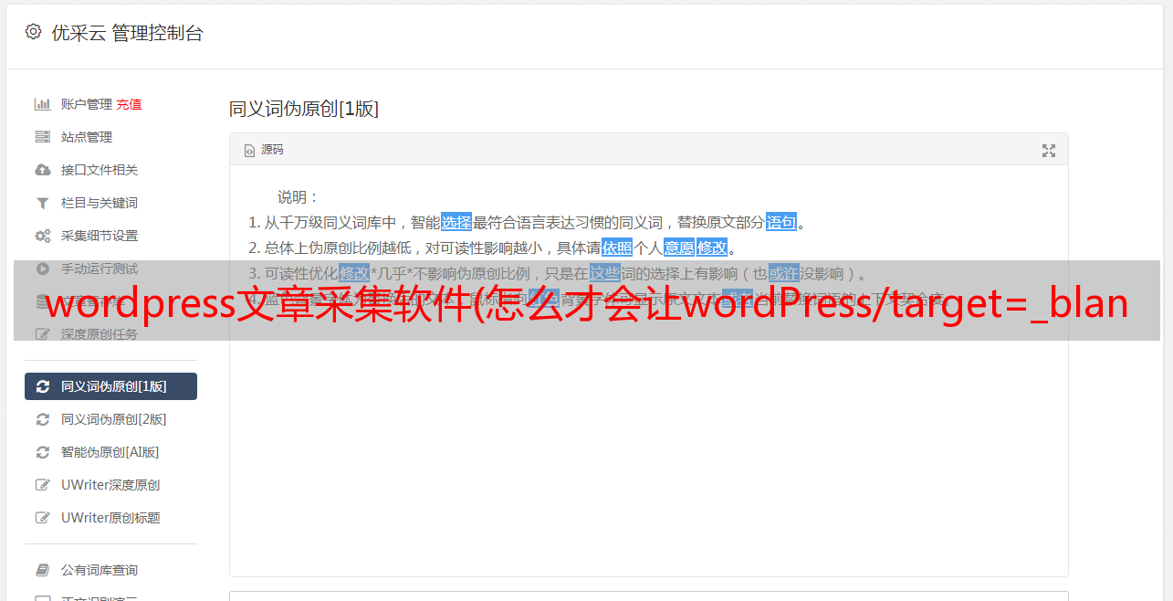 不管你有成百上千个不同的cms网站都可以实现统一管理。一个人维护数百个 网站文章 更新也不是问题。这个wordpress插件也配置了很多seo功能,通过采集伪原创软件发布也可以提升很多SEO方面。