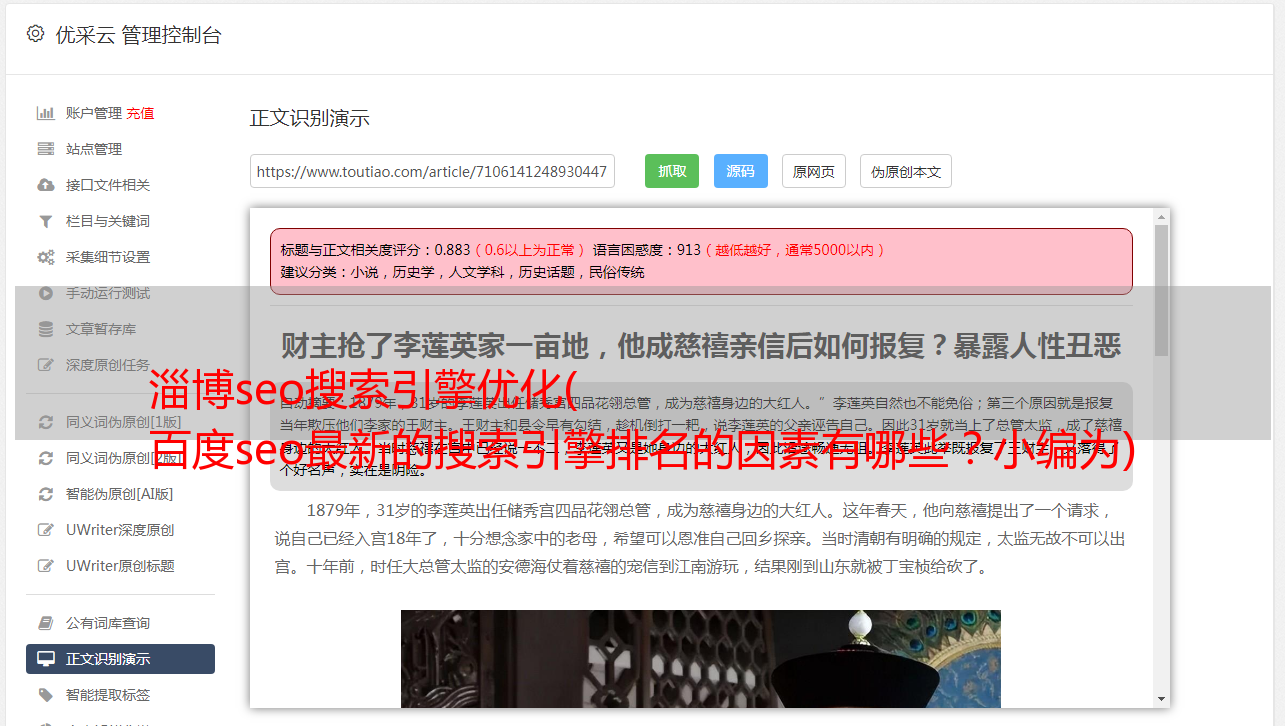 百度一直在强调用户体验,特别是最近重新推出的痛5.0,也是在不断的规范手机搜索结果的内容,是一些人的规范,所以我们需要:①网站 响应式设计:确保与手机url一致。②提高页面加载速度:确保PC端首次加载在3秒内,移动端尽量控制在1.5秒内。有很多方法。③尽量避免使用这些元素。