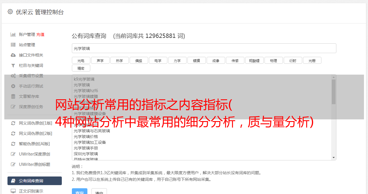 优采云 发布时间: 2022-02-25 21:29网站分析常用的指标之内容指标(