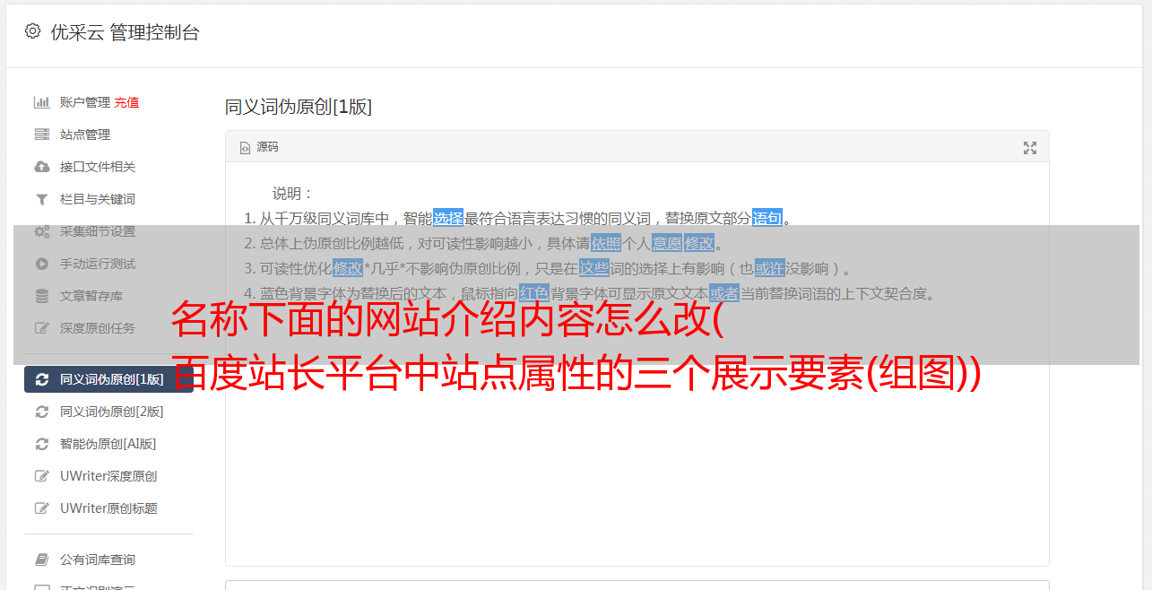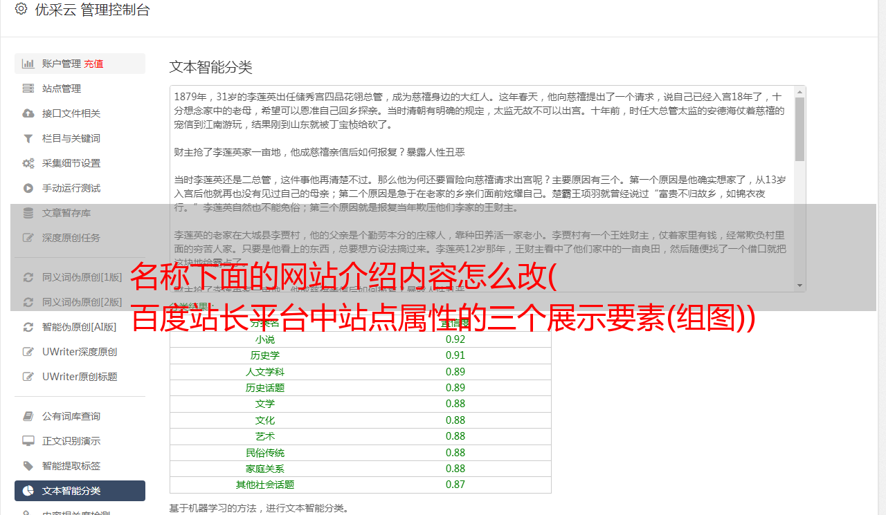 名称下面的网站介绍内容怎么改( 百度站长平台中站点属性的三个展示要素(组图))