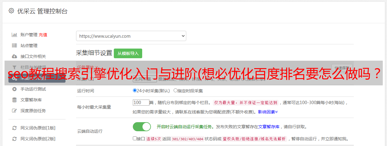 优采云 发布时间: 2022-02-26 07:18seo教程搜索引擎优化入门与进阶(想必优化百度排名要怎么做吗?快跟着云优化团队学习