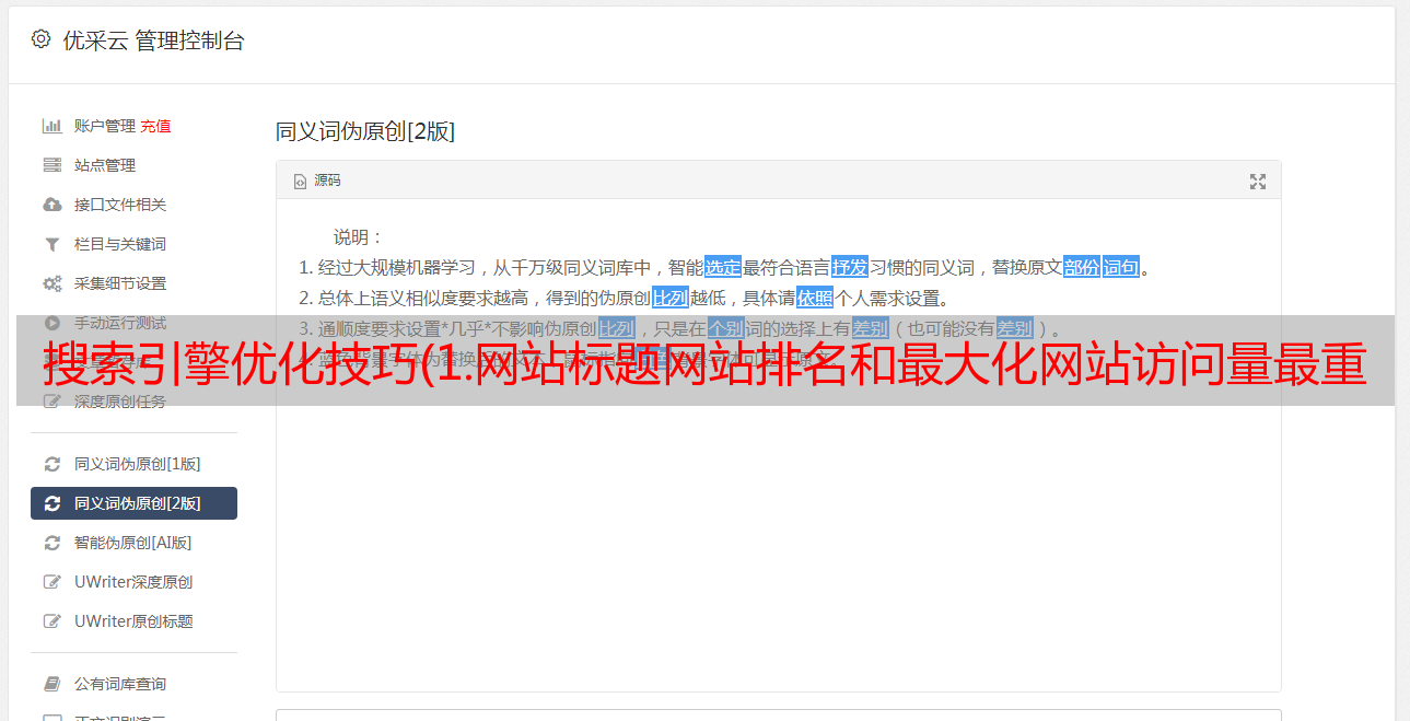 优采云 发布时间: 2022-02-26 09:09搜索引擎优化技巧(1.网站标题网站排名和最大化网站访问量最重要的部分)