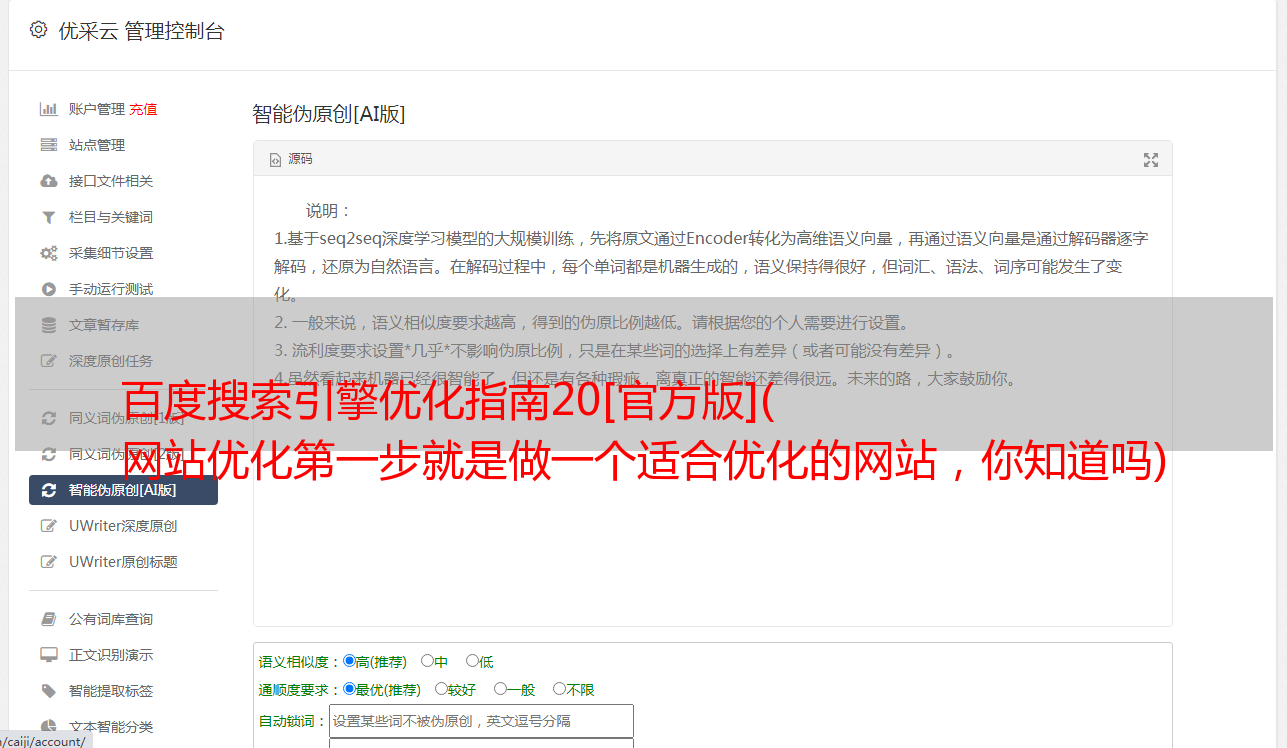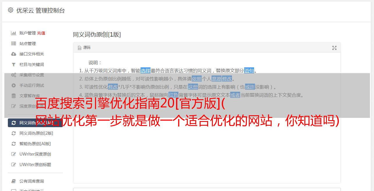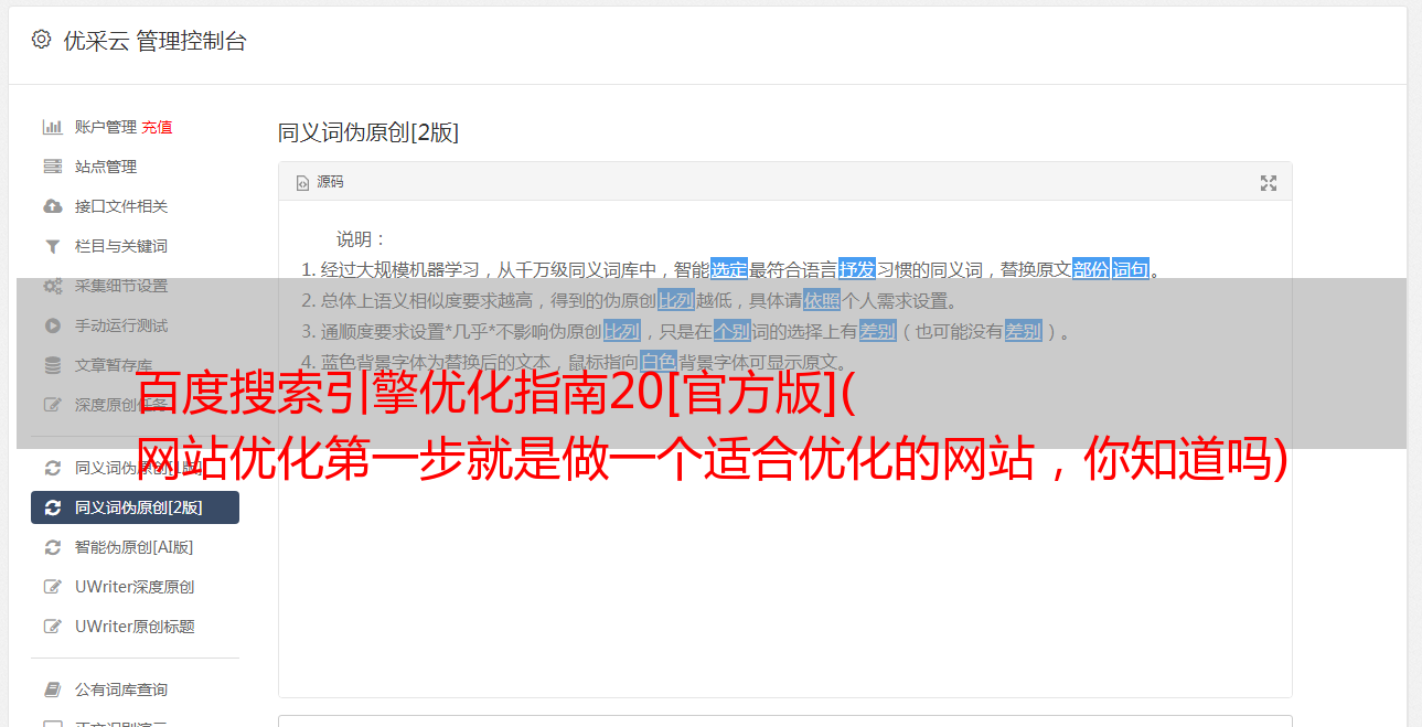 优采云 发布时间: 2022-02-26 09:14百度搜索引擎优化指南20[官方版](