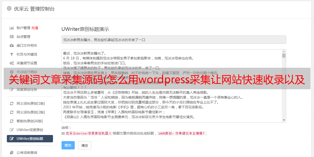 优采云 发布时间: 2022-02-26 10:30关键词文章采集源码(怎么用wordpress采集让网站快速收录以及关键词排名,相信做SEO的小伙伴