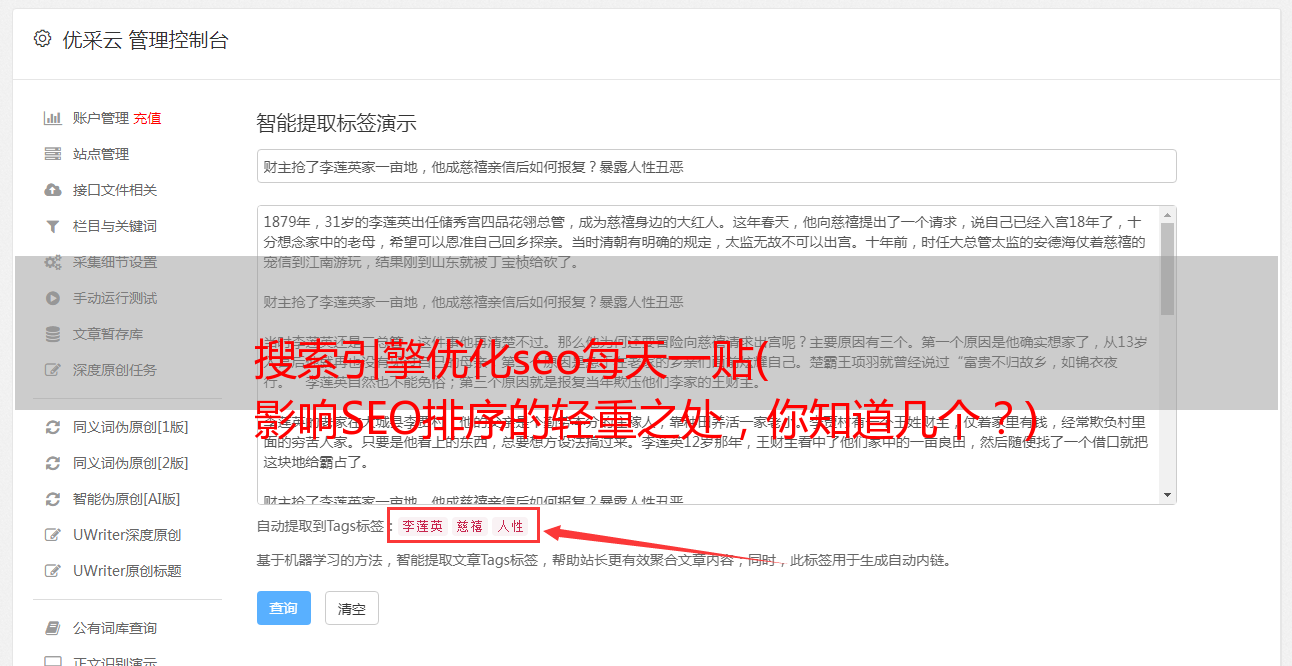 很多时候我们在做SEO的时候,标题会经常说“贴标机_贴标机视频_贴标机工作原理-公司名称”。这种常规的写法确实可以给搜索引擎的标题加分,但是这种操作是没有意义的,因为你要卖一个贴标机,比如我写了一篇文章文章叫做not。出于营销目的的 SEO 是一个流氓。