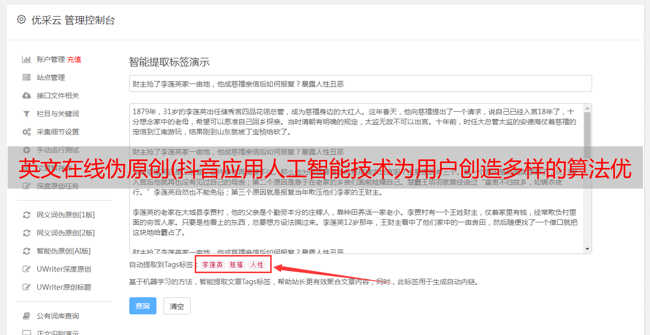 英文在线伪原创(抖音应用人工智能技术为用户创造多样的算法优势也用到了)