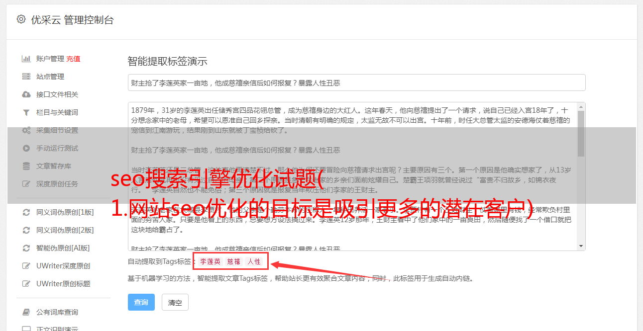 (5),为您详细解读xsy88自贡网站推广平台的相关知识和细节,百猫搜索站优化屏系统,100%全托管,保证话术,为客户定制营销网站,对网站进行seo优化,实现关键词无限人气指数,1-7天到首页,万字长尾词霸占各大搜索引擎闪推,引爆流量,广平总部全国招商,欢迎说再见。seo搜索引擎优化试卷判断题(搜索引擎优化与营销试题)