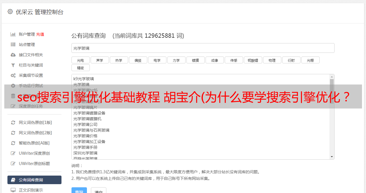 优采云 发布时间: 2022-02-27 03:17seo搜索引擎优化基础教程 胡宝介(为什么要学搜索引擎优化?怎么才干学好优化新手怎么学?)