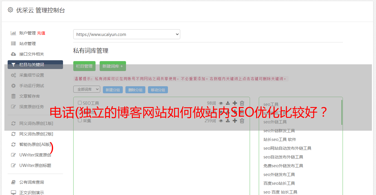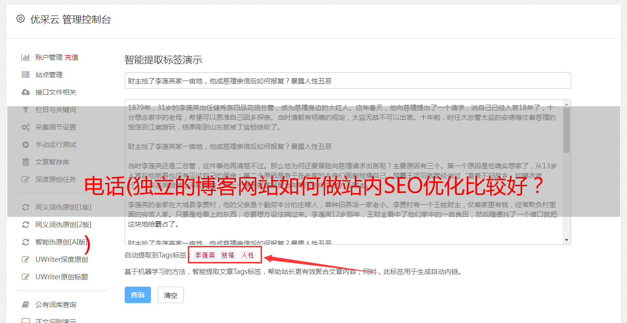 优采云 发布时间: 2022-02-27 05:24电话(独立的博客网站如何做站内SEO优化比较好?