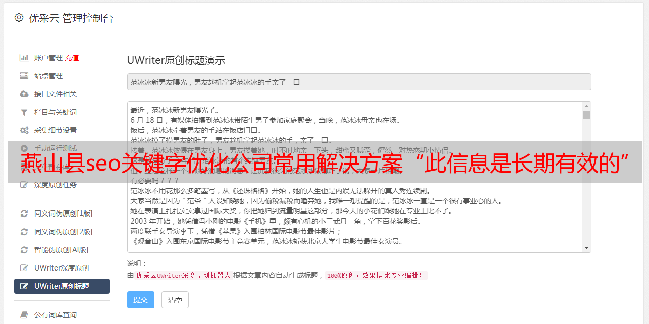 燕山县seo关键字优化公司常用解决方案“此信息是长期有效的”