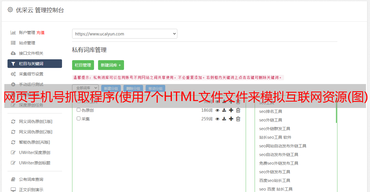 优采云 发布时间: 2022-02-27 13:18网页手机号抓取程序(使用7个HTML文件文件来模拟互联网资源(图)
