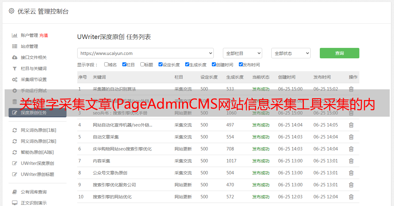 优采云 发布时间: 2022-02-27 16:15关键字采集文章(PageAdminCMS网站信息采集工具采集的内容介绍及注意事项)