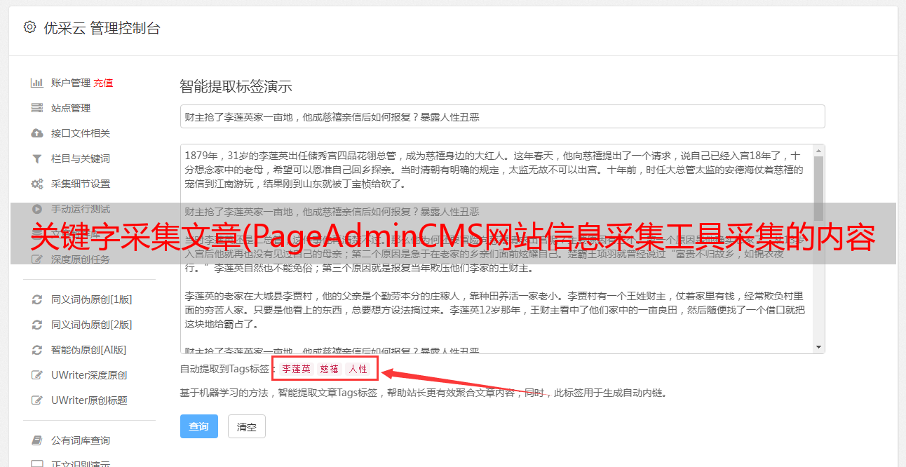 关键字采集文章(PageAdminCMS网站信息采集工具采集的内容介绍及注意事项)