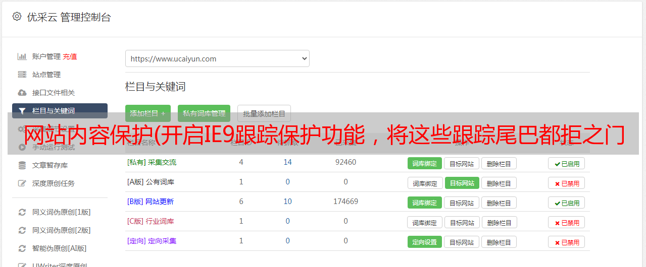 优采云 发布时间: 2022-02-27 22:34网站内容保护(开启IE9跟踪保护功能,将这些跟踪尾巴都拒之门外!)