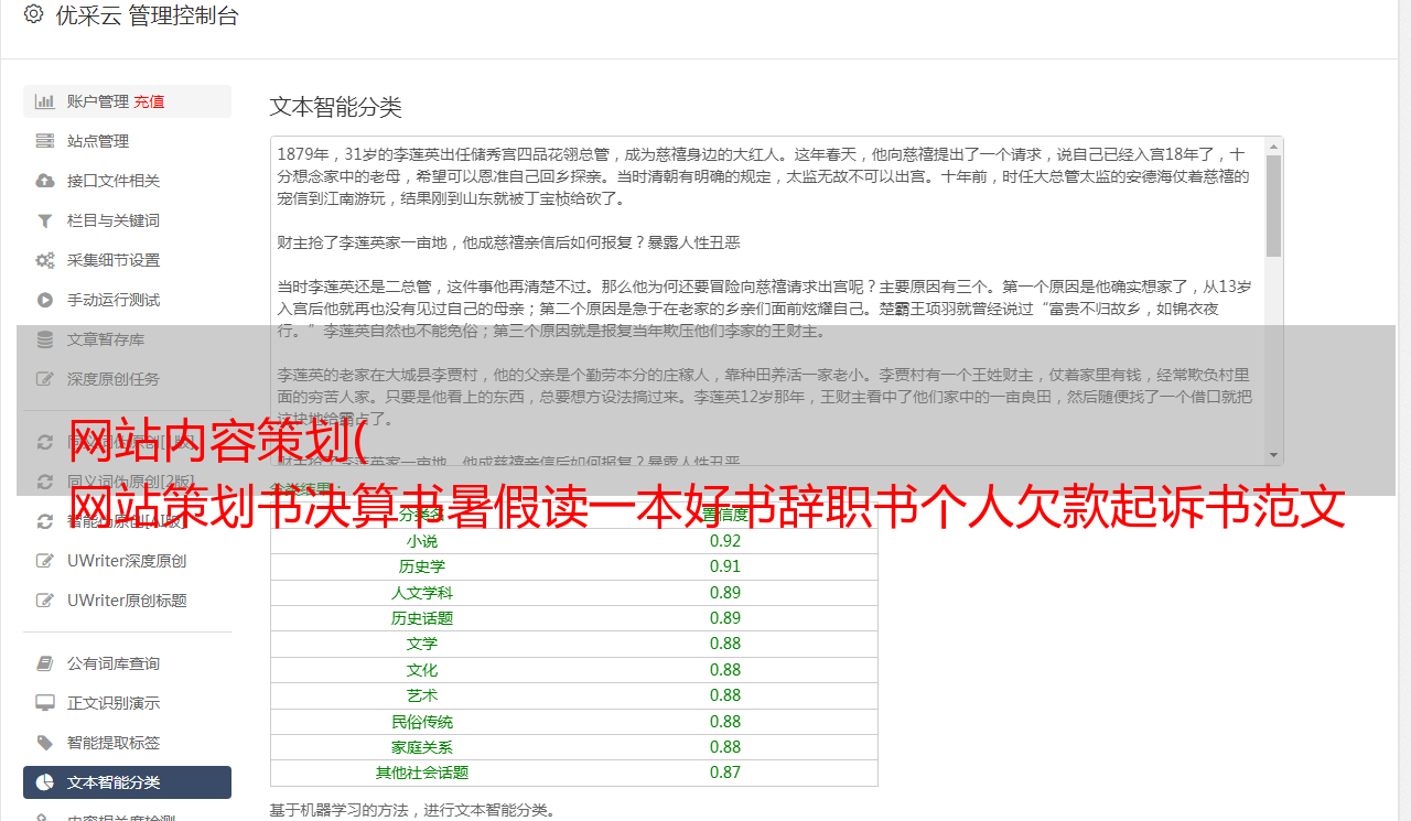 网站内容策划( 网站策划书决算书暑假读一本好书辞职书个人欠款起诉书范文表态发言怎么写)