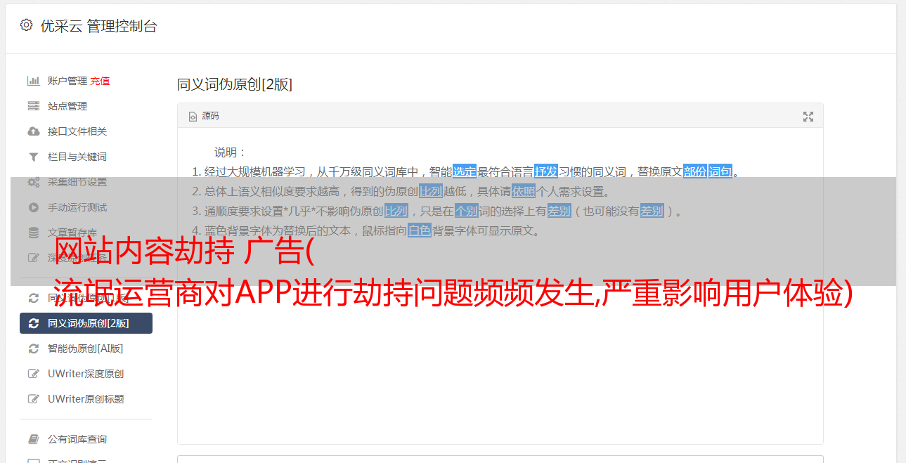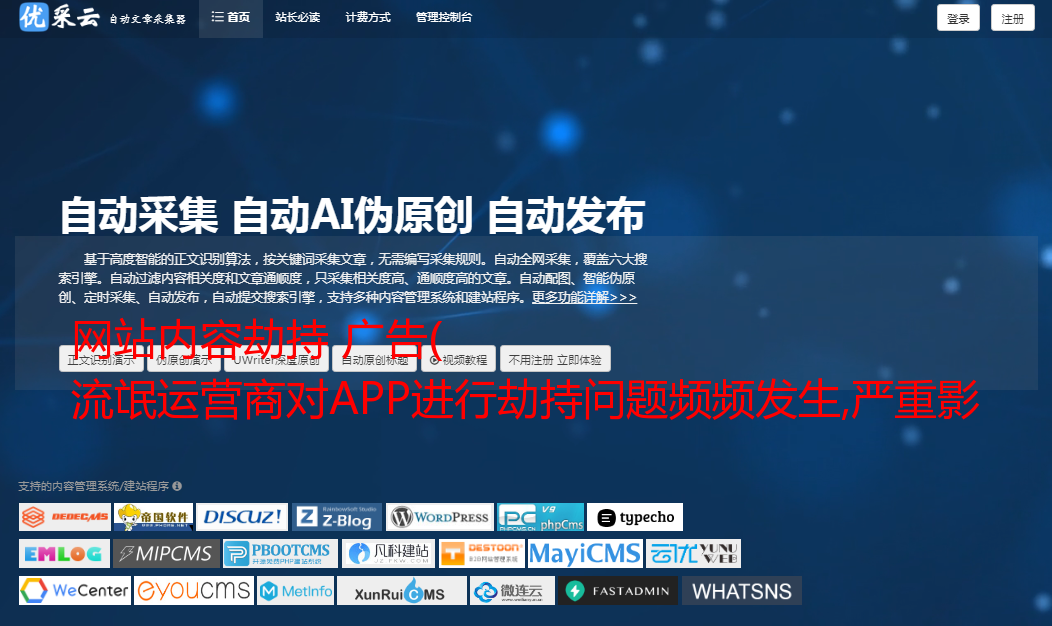 优采云 发布时间: 2022-02-28 04:00网站内容劫持 广告(