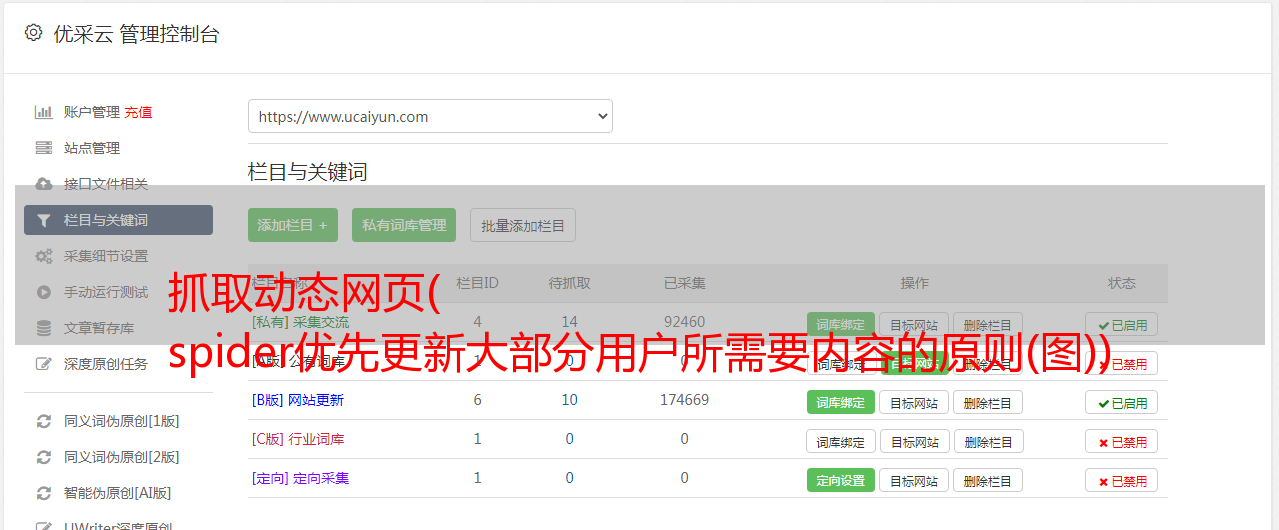 不同的网页有不同的更新频率。网站 主页、目录页、特殊页和文章 页面在同一站点内的更新频率肯定是不同的。因此,对于同一站点内的网页,蜘蛛以不同的频率抓取不同类型的网页。首页和目录页是蜘蛛经常访问的页面:根据专题页面的时效性或其他特性,蜘蛛可能会在一定时间内频繁爬取,时效到期后会降低爬取频率;文章 页面,蜘蛛很可能在第一次访问后就不会再来了。虽然整个互联网的网页很多,但网页的种类并不多。每种类型的网页都有自己的布局和更新规则。搜索引擎有足够的能力发现网页的类型并设置合理的重新抓取频率。这也有利于蜘蛛对网页更新频率的判断。