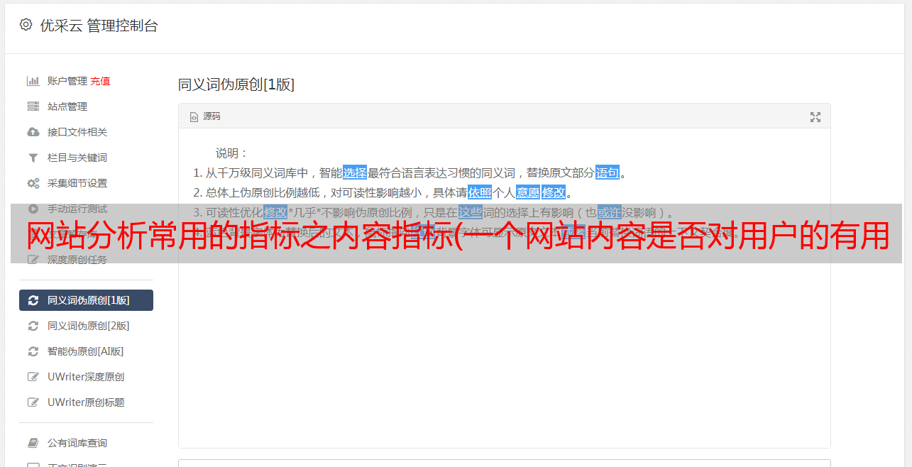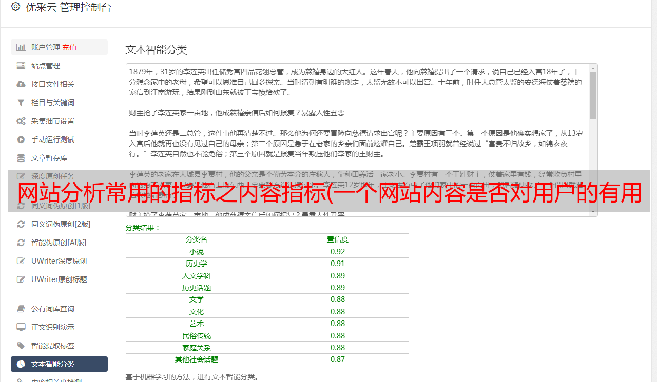 优采云 发布时间: 2022-02-28 10:04网站分析常用的指标之内容指标(一个网站内容是否对用户的有用,是否被用户喜欢)