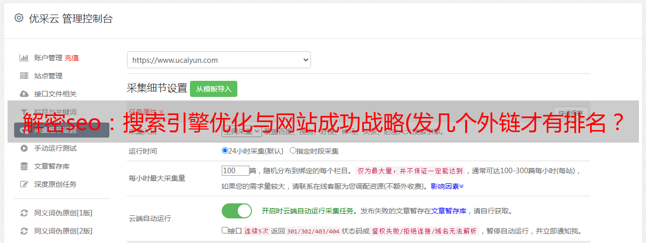 优采云 发布时间: 2022-02-28 12:14解密seo:搜索引擎优化与网站成功战略(发几个外链才有排名?如何看待SEO中的“技巧”)