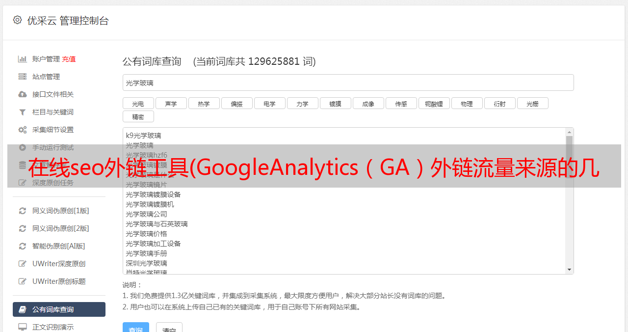 优采云 发布时间: 2022-02-28 17:13在线seo外链工具(GoogleAnalytics(GA)外链流量来源的几种常见问题)