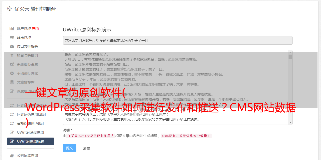 一键文章伪原创软件( WordPress采集软件如何进行发布和推送?CMS网站数据 )