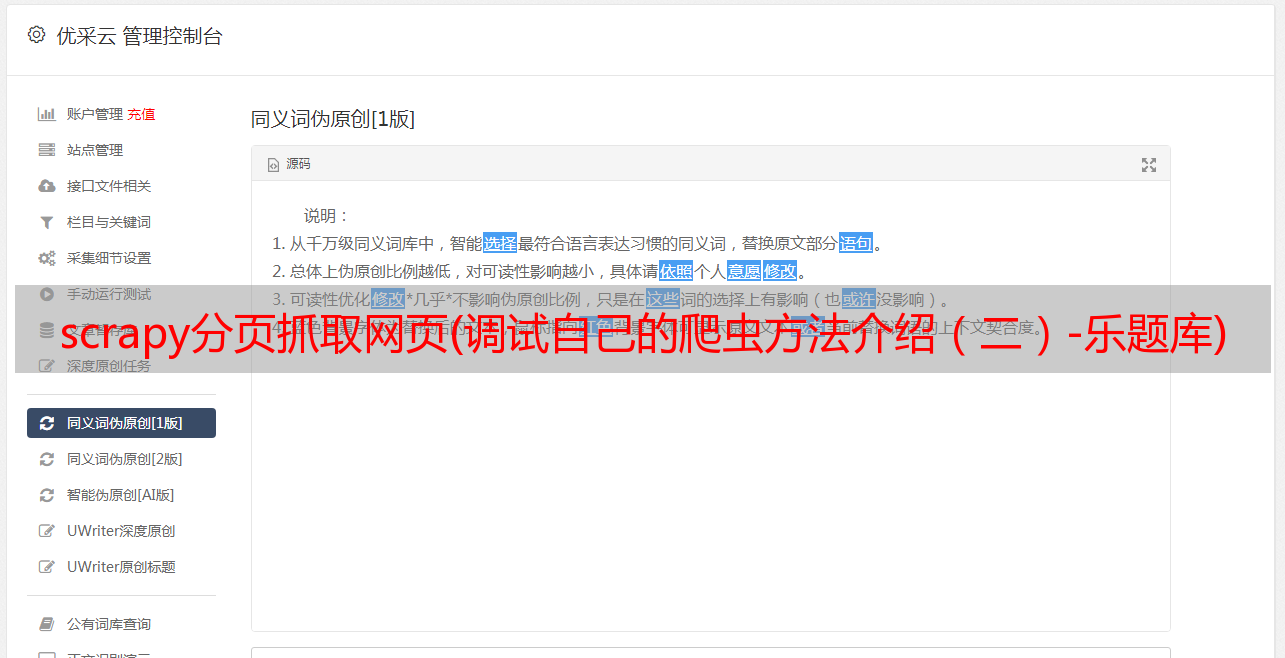优采云 发布时间: 2022-02-28 21:18scrapy分页抓取网页(调试自己的爬虫方法介绍(二)-乐题库)