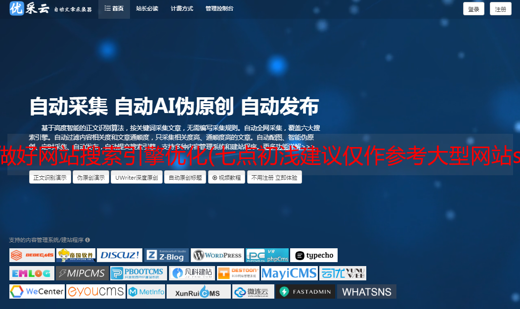优采云 发布时间: 2022-03-01 05:14如何做好网站搜索引擎优化(七点初浅建议仅作参考大型网站seo优化:建议